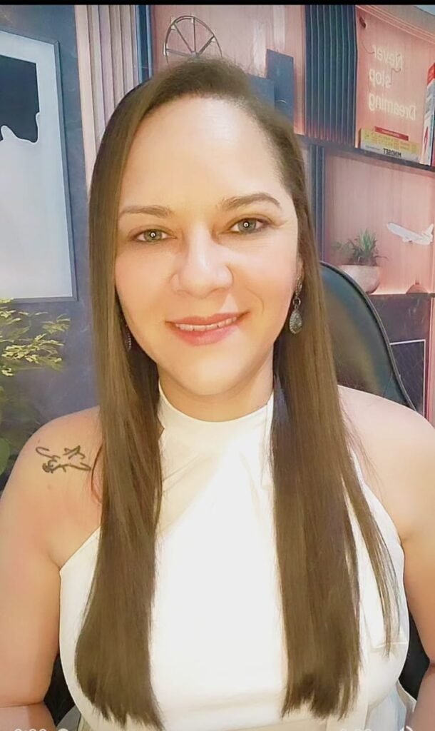 Com formação como comissária de voo e piloto civil, além de certificação pela Oxford University no Reino Unido e experiência no setor de aviação, criou a Mentoria de acompanhamento English First Step com abordagem dinâmica e objetiva, tendo os resultados dos alunos como foco principal.